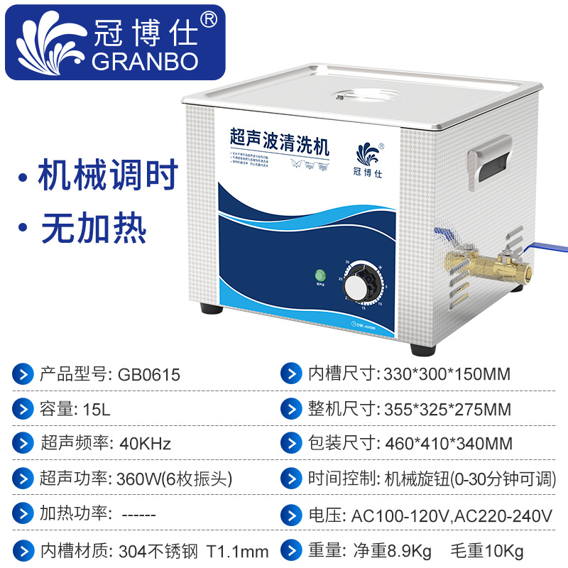 冠博仕GB0615超聲波清洗機(jī)|15L/360W|機(jī)械定時(shí)無加熱