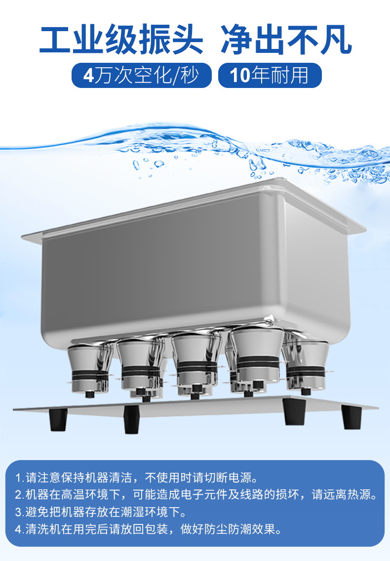 - 工業換能器: 采用工業震頭40KHz,力度強勁效果佳;