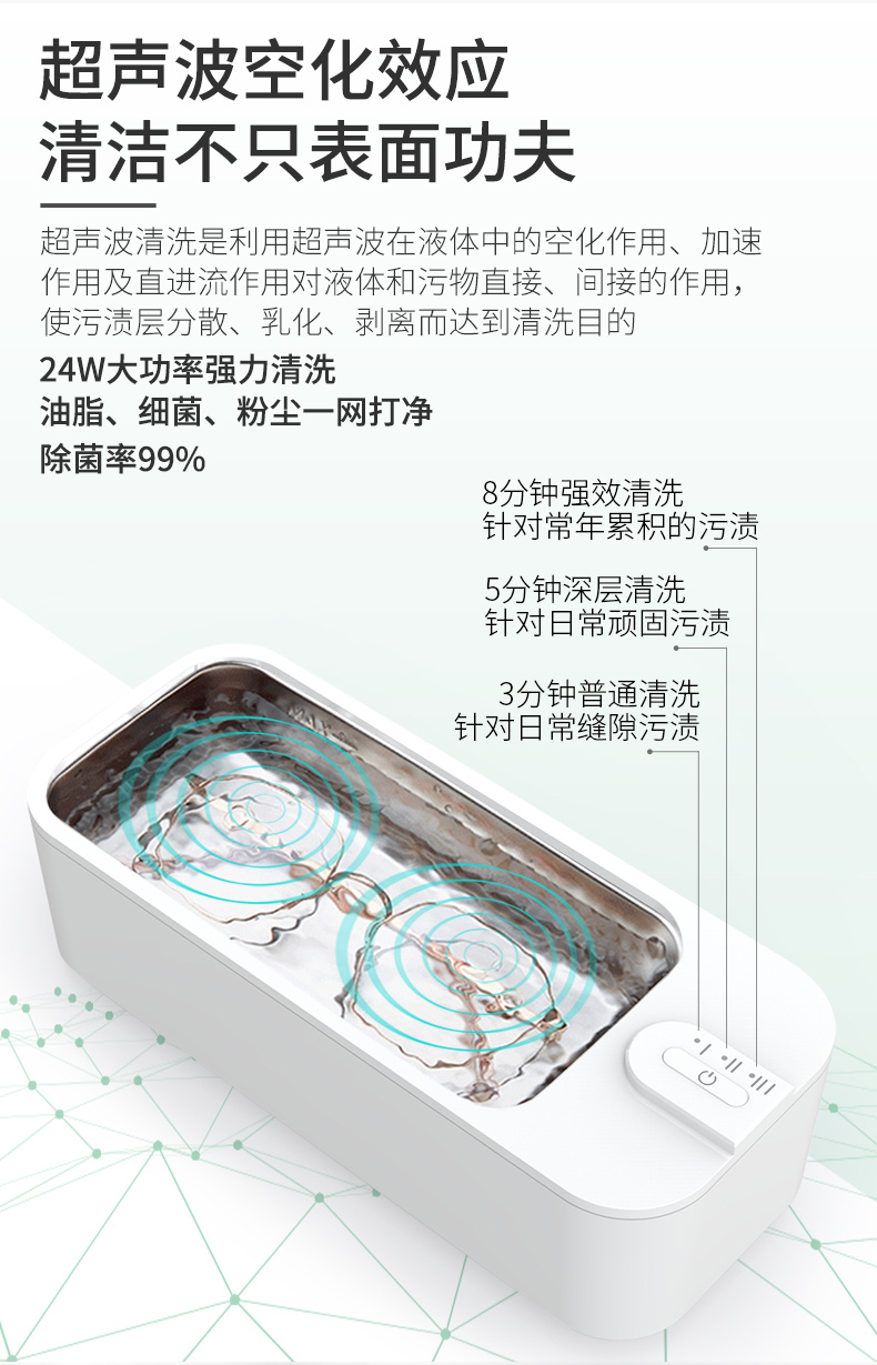 - 超聲波清洗機與清洗劑一起使用,清洗效果更佳!