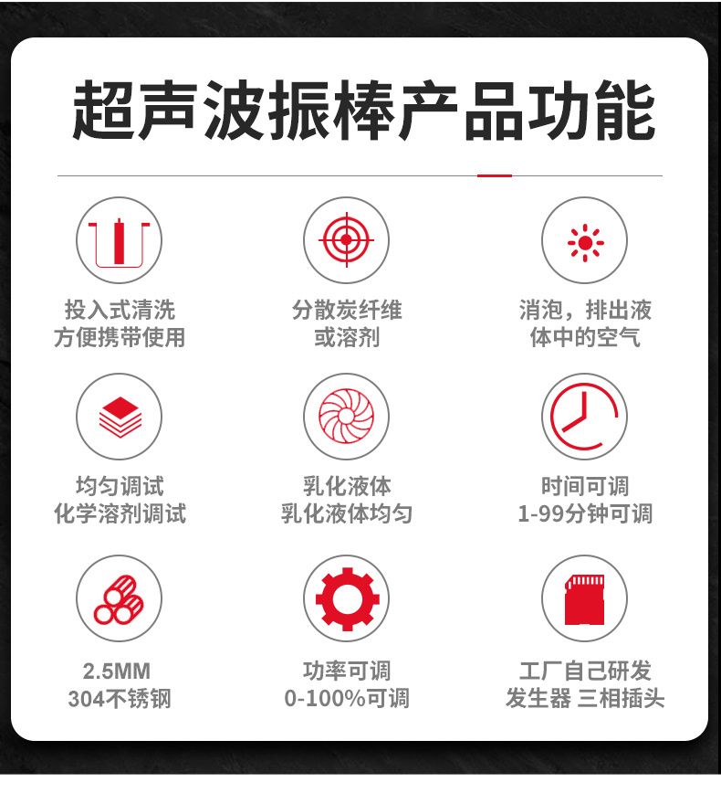 實驗室高校研究所應用:碳纖維分散擴散,化學溶液的攪拌、均勻、加速反應,細胞粉碎,產品粉碎,物質分散(懸浮液制備)和凝聚;